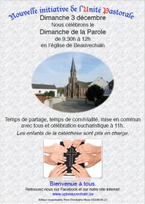 Le pape nous invite à vivre le premier dimanche de l’Avent un Dimanche particulièrement tournés vers la Parole de Dieu. C’est pourquoi, l’Unité Pastorale vous invite à vivre ce dimanche 3 décembre une matinée particulière autour de l’Évangile du jour.