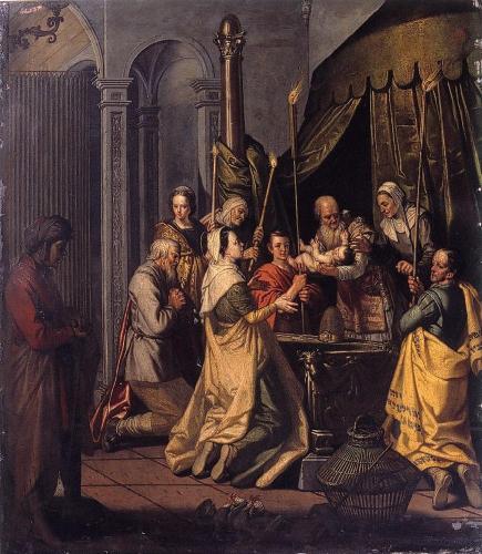 La loi juive prescrivait que tout garçon premier-né devait être offert au Seigneur, lorsqu’il avait 40 jours ( Ex 13 2 ). C’est ce que firent Marie et Joseph avec Jésus. Mis on le rachetait ensuite en donnant en échange 2 taureaux si on était riche, 2 moutons si on était moyen riche et 2colombe ou tourterelles si on était pauvre. Joseph et Marie rachetèrent jésus avec 2 colombes. Lors de cette présentation au temple de Jérusalem, ils rencontrèrent le vieillard Syméon qui savait qu’il verrait son Sauveur avant de mourir et la prophétesse Anne qui prédit à Marie qu’un glaive de douleurs transpercerait son cœur…