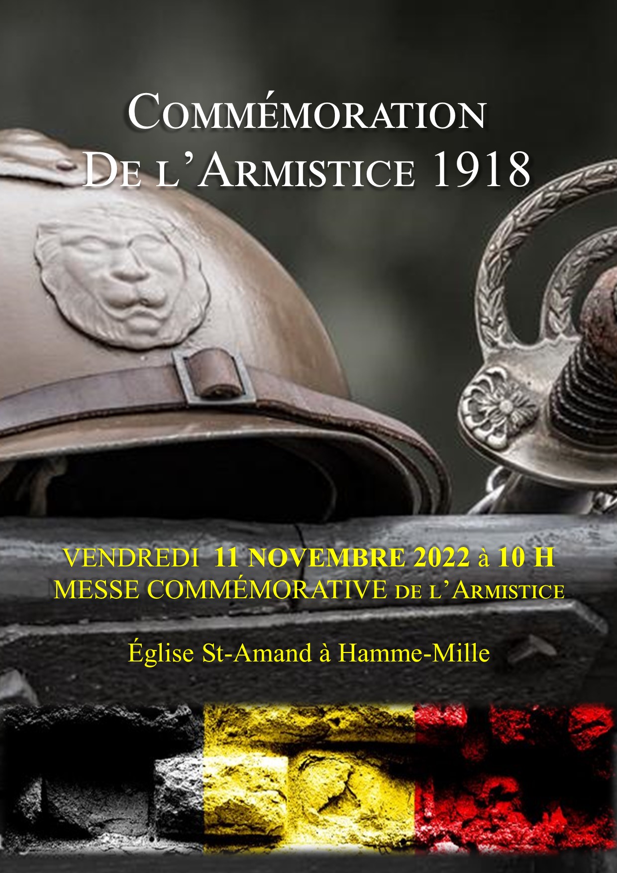 Le vendredi 11 novembre – Journée de l’Armistice 1918. Nous rendons hommage à tous les combattants Belges ainsi que d’autres pays, à toutes les victimes civiles ou militaires, de ce conflit si meurtrier, pendant la cérémonie qui aura lieu à Hamme-Mille.