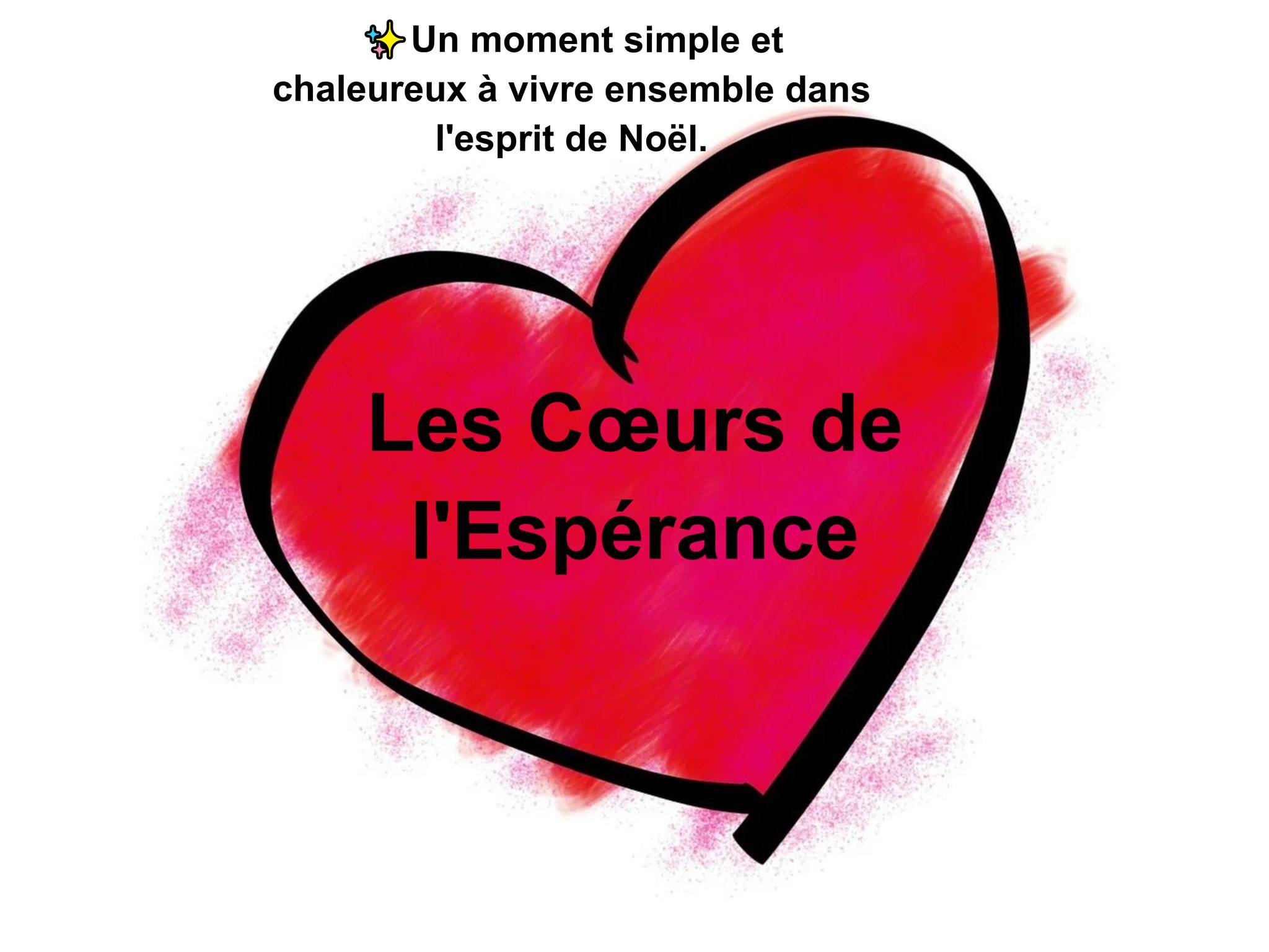 À l’approche de la fête de Noël ainsi qu’une fête de la fin d’année, nous vous invitons à partager un moment unique, chaleureux et de partage : « Les Cœurs de l’Espérance ».