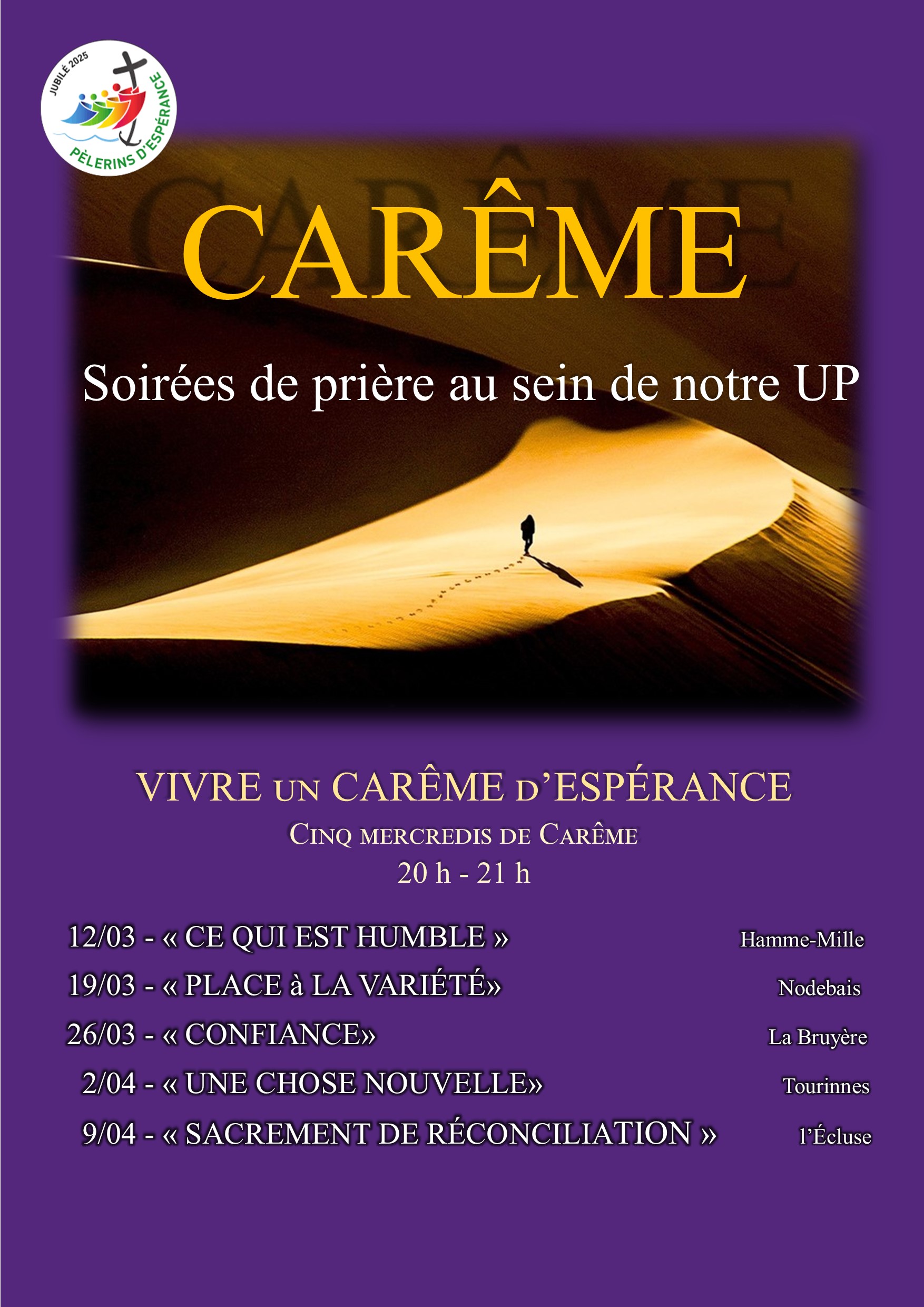 Au cours de la dernière de nos rencontres de Carême, nous vous invitons à la célébration du Sacrement de la Réconciliation à l’Écluse le 9 avril 2025 à 20h.