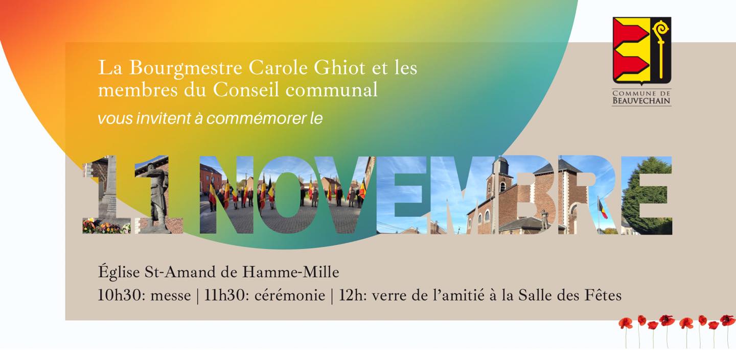 Et nous vous invitons ce samedi 11 novembre à l’église St-Amand à Hamme-Mille pour la Messe commémorative de l’Armistice en 1918.