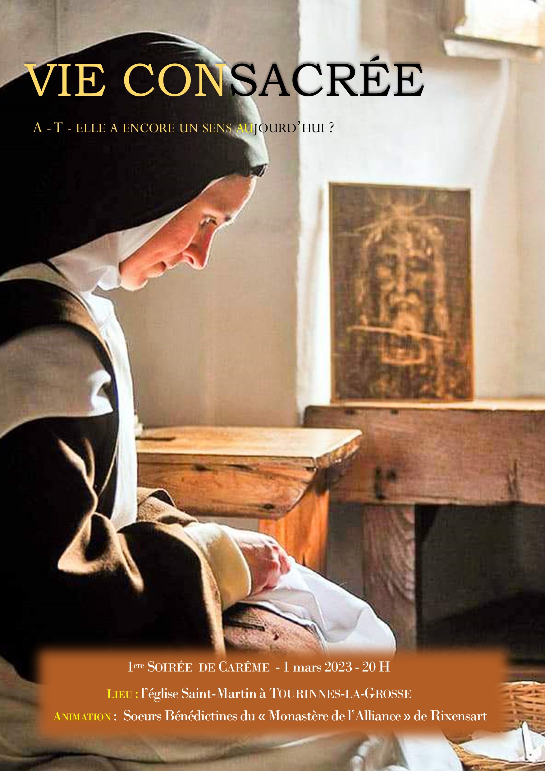 Cette première soirée « conference-débat-prière » sera animée par les Soeurs Bénédictines du Monastère de l’Alliance de Rixensart.