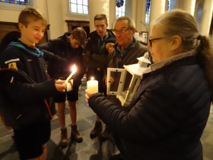 Le départ eut bien lieu, samedi 23 décembre, devant l’église de Nodebais à 07h30. Par les chemins de campagne, nous avons rejoint Gottechain où nous avons transmis la flamme de Bethléem. Ensuite, direction l’église St Georges de Grez où nous attendait Anne Chaidron, animatrice du catéchisme, à qui nous avons partagé cette flamme de la paix (voir photo).