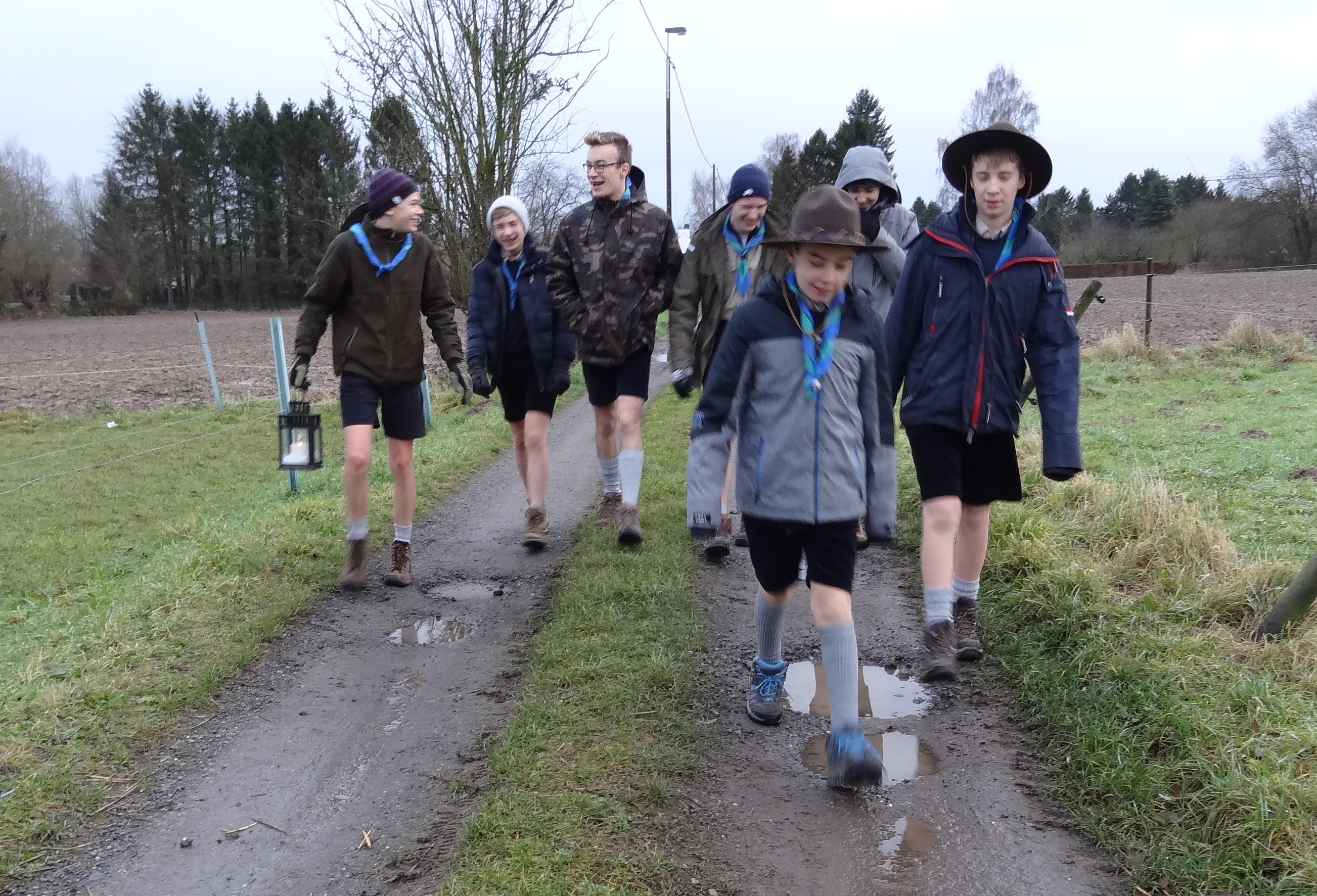 Deux plus courtes étapes se sont alors succédées pour Céroux et Glabais où nous avons aussi partagé cette lumière de Bethléem. Entre ces deux étapes, quelques petites douceurs nous ont été offertes par Dominique de la Cabosse d’Or.