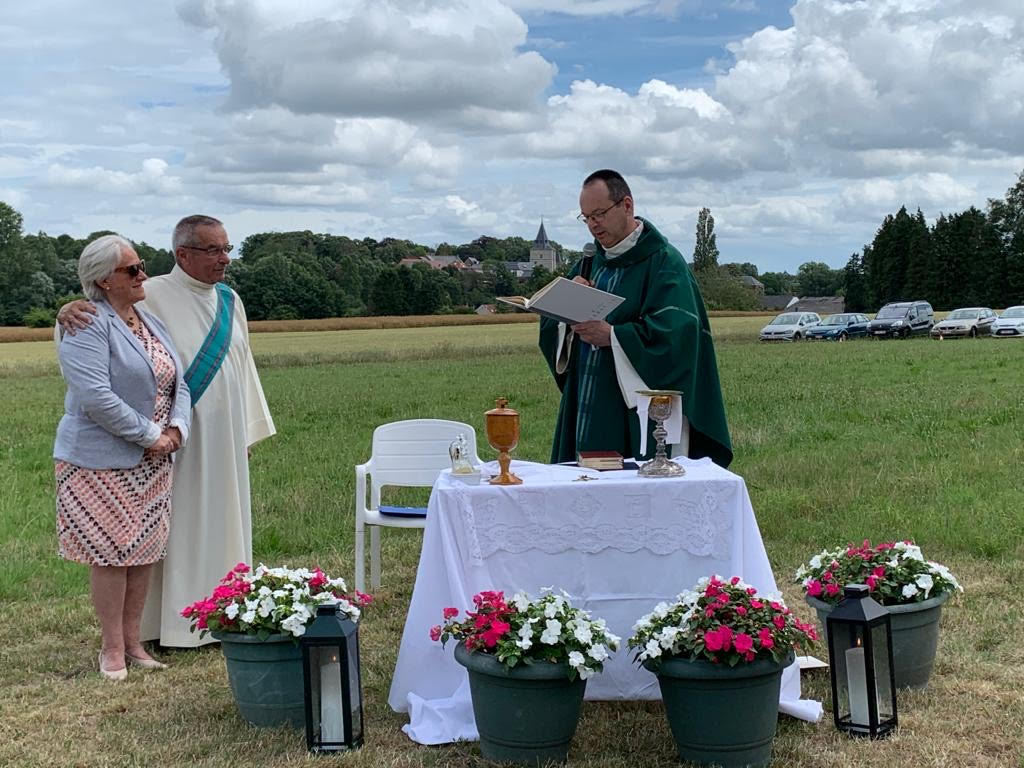 De Wavre, nous avons rejoint l’église du Petit Ry, église circulaire construite pour l’expo de 58 à Bxl, rachetée dans un premier temps par le Vatican et ensuite reconstruite pour la paroisse du Petit Ry. Là, nous fûmes très bien accueilli par le curé de la paroisse (très content d’avoir aussi reçu la flamme) pour nous permettre de consommer notre pique-nique dans la salle de la cure.